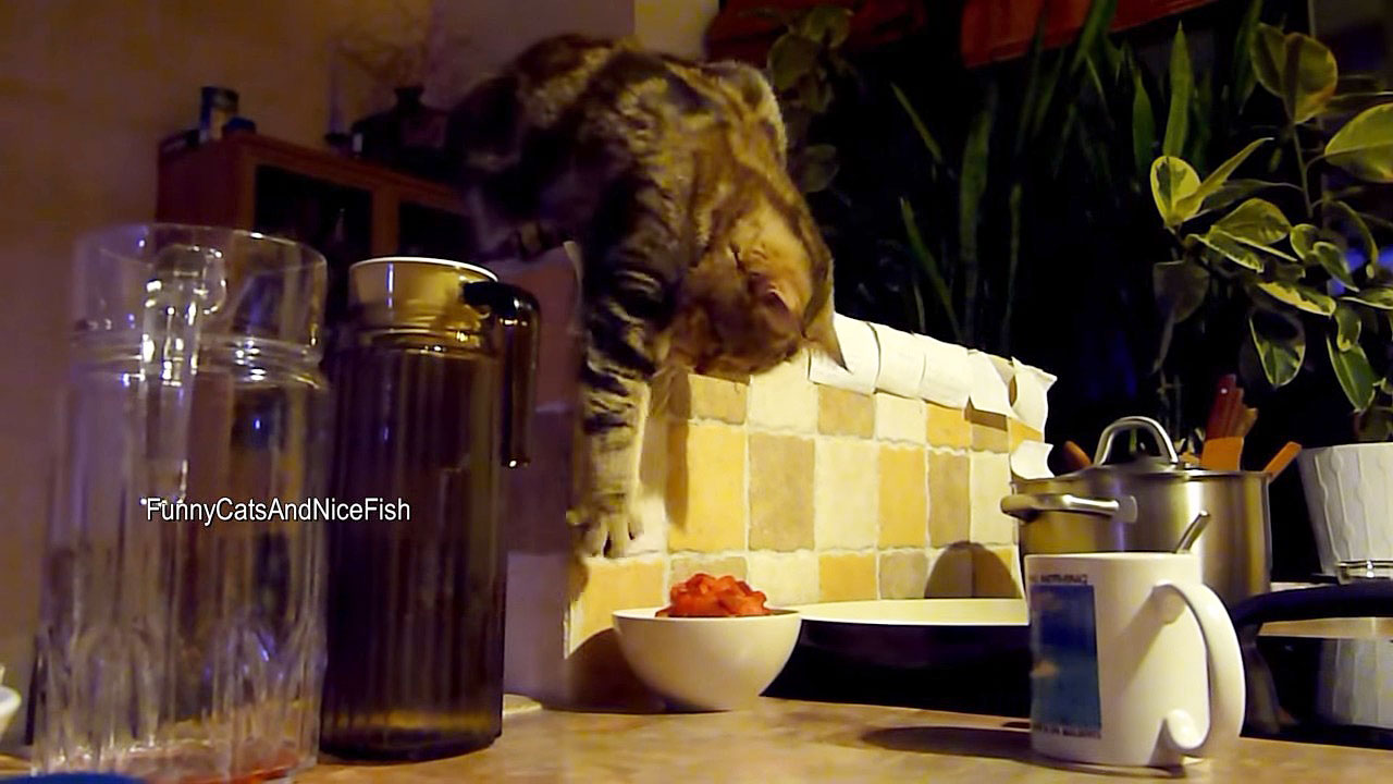 ポップコーンマシーンに恐れる猫の姿が笑える(笑)